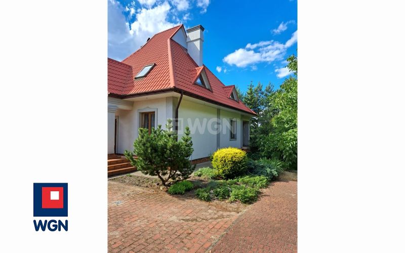 Dom pokryty jest trwałą i estetyczną dachówką,co podkreśla jego solidne wykonanie.
